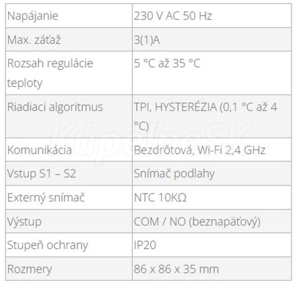 TC 50-WIFI je moderný termostat, ktorý slúži na ovládanie vykurovania alebo chladenia. Je určený pre montáž do elektroinštalačnej krabičky (rozteč skrutiek 60 mm). Vyznačuje sa prehľadnou ponukou a množstvom užitočných funkcií. Umožňuje vzdialené ovládanie vykurovacieho systému pomocou aplikácie Tuya Smart. Programovanie termostatu je veľmi jednoduché a umožňuje prispôsobiť pracovný cyklus vykurovania dennému režimu používateľov.