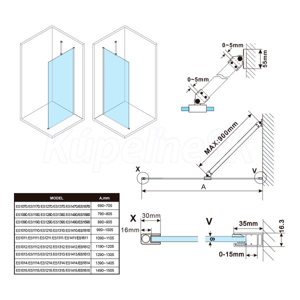 ZnačkaPOLYSAN SériaESCA Šírka900. mm Výška2100. mm Farba profiluČierna mat TvarJednostenn