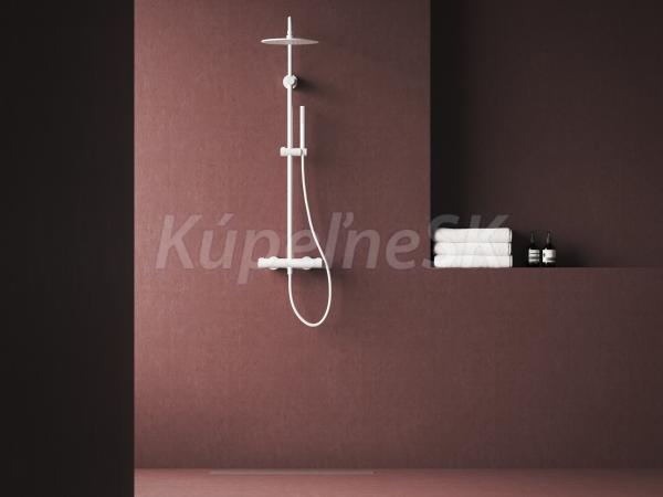Sprchový stĺp Spring termostatický, posuvný, so sprchovým setom. V bielom matnom vyhotovení.