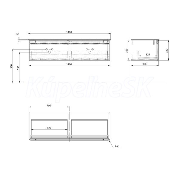 >> Kúpeľňový nábytok >> SAPHO kúpeľňový nábytok >> Erra KERALA nábytok Sapho >> Sapho KERALA umývadlová skrinka 140x35x47,5cm, 1x zásuvka, agila