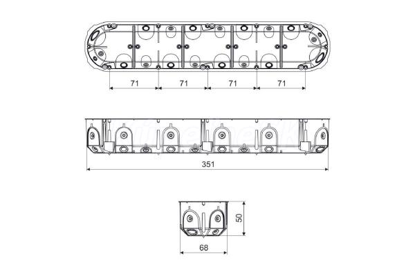 Hĺbka: 45 mm spôsob montáže: dutá stena priemer: 70 mm Šírka: 354 mm vnútorná hĺbka: 44 mm pre priemer potrubia: 20 mm pre priemer kábla: 7 - 20 mm max. prierez drôtu: 4 mm2