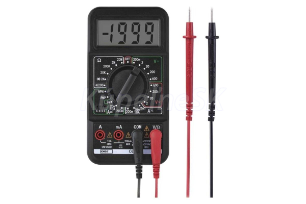 výber rozsahu: manuálny Striedavé napätie: 2 V-750 V Striedavý prúd: 2 mA-20 A Jednosmerné napätie: 200 mV - 1 000 V Jednosmerný prúd: 200 µA-20 A elektrický odpor: 200 Ohm-20 MOhm kontinuita obvodu: áno test diód: áno test tranzistorov: áno