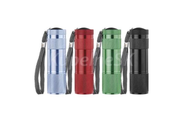 Všeobecný opis- Kovová LED baterka je vybavená 9 LED diódami s priemerom 5 mm, ktoré zaručujú dosvit 22 m.