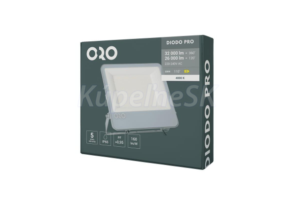 Reflektory DIODO s príkonom: 30 W, 50 W, 100 W, 150 W, 200 W Svetelný tok: 4800 lm, 8000 lm, 16000 lm, 24000 lm, 32000 lm životnosť: 50 000 hodín Napätie: 220-240 VAC frekvencia: 50 Hz Rozsah pracovných teplôt: -25 °C až +40 °C Trieda ochrany: IP65