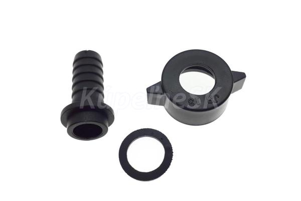 koniec hadice vyrobené z čierneho polyetylénu používa sa najmä na pripojenie k vodnému zdroju a následné pripojenie hadice pre lepšie upevnenie hadice sa odporúča použiť hadicovú svorku