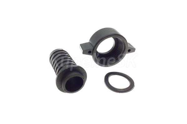 koniec hadice vyrobené z čierneho polyetylénu používa sa najmä na pripojenie k vodnému zdroju a následné pripojenie hadice pre lepšie upevnenie hadice sa odporúča použiť hadicovú svorku