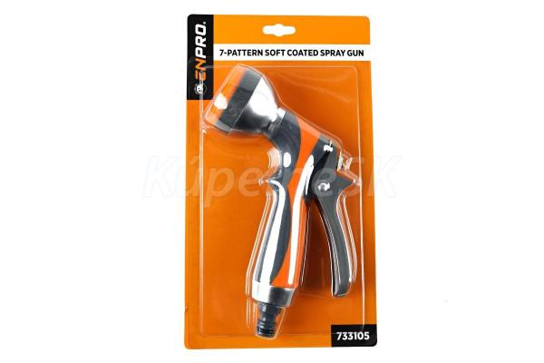 7 funkcií zbrane, ENPRO Kvalitná striekacia pištoľ so šiestimi nastaviteľnými polohami zavlažovania vyrobené z vysokokvalitného plastu a kovu Univerzálny adaptér - na pripojenie hadice s rýchlospojkou 1/2" alebo 3/4"