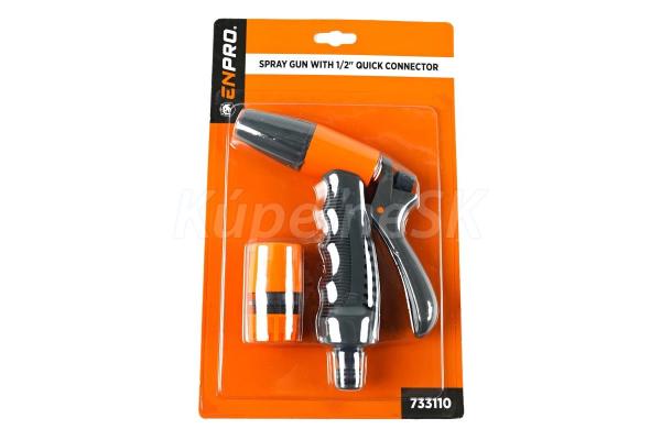 trysková pištoľ - sada, ENPRO sada obsahuje kvalitnú tryskovú pištoľ + rýchlospojku vyrobené z vysokokvalitného plastu Univerzálny adaptér - na pripojenie hadice s rýchlospojkou 1/2" alebo 3/4"