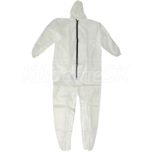 kombinéza s elastickou kapucňou, elastickými manžetami a pásom zapínanie na zips polypropylén 40 g/m2 farba biela priedušný a ľahký materiál chráni bežné pracovné oblečenie