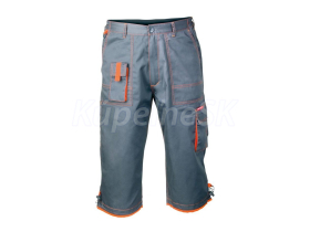 kombinéza 3/4, sivá 65% polyester, 35% bavlna, 245 g/m2 7 vreciek vrátane 4 so suchým zipsom vrecko na mobilný telefón dvojité švy nastavenie šírky pomocou elastického pásu regulácia šírky spodnej časti nohavíc pomocou špecifikácie