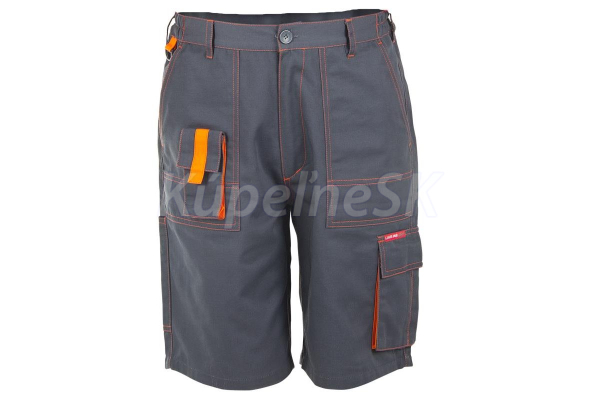 krátke nohavice LPAS1, sivé 65% polyester, 35% bavlna, 245 g/m2 7 vreciek vrátane 4 so suchým zipsom vrecko na mobilný telefón dvojité švy nastavenie šírky pomocou elastického pásu krúžok na kľúče úzke bočné vrecko kontrast