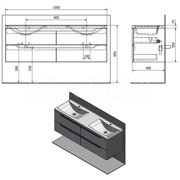 ZnačkaSAPHO SériaWAVE 3D modelÁNO Rozmer150x50x48 cm Šírka1500. mm Výška500. mm Hĺbka480.