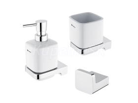 Sada keramických nástěnných koupelnových doplňků - dávkovač mýdla, držák kartáčků, háček na ručník je skvělým doplňkem do koupelny.