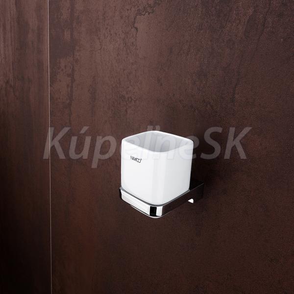 Nástěnný držák s keramickým pohárkem na kartáčky. 1 ks.