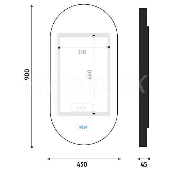 Nimco Novinky ČERNÉ LED zrcadlo 450x900 se dvěma dotykovými senzory Viditelný, ZPC 32003LV
