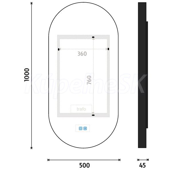 Nimco Novinky ČERNÉ LED zrcadlo 500x1000 se dvěma dotykovými senzory Viditelný, ZPC 32004L