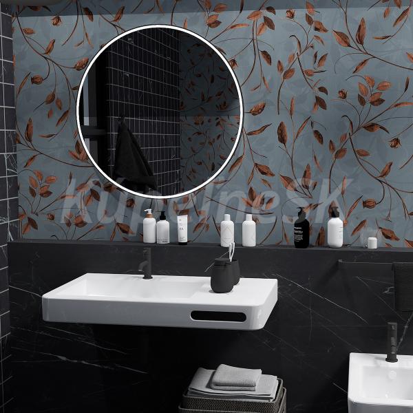 Černé kulaté zrcadlo do koupelny 80 cm s osvětlením je skvělým doplňkem do koupelny. Zrcadla do koupelny NIMCO vynikají kvalitním zpracováním a moderním designem. Svícení za použití akrylátového skla, plexiglass. Konstrukce pro uchycení zrcadla je z hliníkového rámu 32x19 mm, sklo zrcadla má tloušťku 5 mm. Průměr zrcadla 800 mm. Led pásky jsou ukryté v PVC tubě za sklem zrcadla. Světlo prochází skrz sklo a odráží se po celém obvodu zrcadla, tím vytváří i zajímavý světelný efekt na stěně. Připojení 220-240 V. Ochrana IP 44. Zrcadlo je bez vypínače. Zapojení zrcadla je do el. rozvodu a jeho zapínání je přes vypínač světel v místnosti. LED čipy mají vysoký výkon. Barevná teplota je denní bílá – jasné polední světlo. Životnost LED diod je až 50 000 hodin. Součástí zrcadla je kabelová spojka, IP 44. Délka kabelu 95 cm.