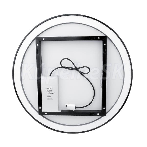 Černé kulaté zrcadlo do koupelny 60 cm s osvětlením, dotykový spínač je skvělým doplňkem do koupelny. Zrcadla do koupelny NIMCO vynikají kvalitním zpracováním a moderním designem. Svícení za použití akrylátového skla, plexiglass. Konstrukce pro uchycení zrcadla je z hliníkového rámu 32x19 mm, sklo zrcadla má tloušťku 5 mm. Průměr zrcadla 600 mm. Led pásky jsou ukryté v PVC tubě za sklem zrcadla. Světlo prochází skrz sklo a odráží se po celém obvodu zrcadla, tím vytváří i zajímavý světelný efekt na stěně. Zrcadlo je vsazené do černého hliníkového rámu, který přesahuje 5 mm přes zrcadlovinu. Připojení 220-240 V. Ochrana IP 44. Zapínání / vypínání / ovládání je pomocí dotykového senzoru s pamětí. Možnost nastavení barevné teploty svícení a intenzity svítivosti. LED čipy mají vysoký výkon. Životnost LED diod je až 50 000 hodin. Součástí zrcadla je kabelová spojka, IP 44. Délka kabelu 82 cm.