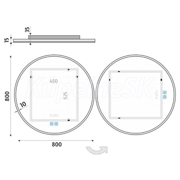 Kulaté zrcadlo do koupelny 80 cm s osvětlením, dotykový spínač je skvělým doplňkem do koupelny. Zrcadla do koupelny NIMCO vynikají kvalitním zpracováním a moderním designem. Svícení za použití akrylátového skla, plexiglass. Konstrukce pro uchycení zrcadla je z hliníkového rámu 32x19 mm, sklo zrcadla má tloušťku 5 mm. Průměr zrcadla 800 mm. Led pásky jsou ukryté v PVC tubě za sklem zrcadla. Světlo prochází skrz sklo a odráží se po celém obvodu zrcadla, tím vytváří i zajímavý světelný efekt na stěně. Připojení 220-240 V. Ochrana IP 44. Zapínání / vypínání / ovládání je pomocí dotykového senzoru s pamětí. Možnost nastavení barevné teploty svícení a intenzity svítivosti. LED čipy mají vysoký výkon. Životnost LED diod je až 50 000 hodin. Součástí zrcadla je kabelová spojka, IP 44.