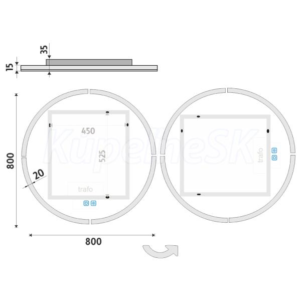 Nimco KULATÁ ZRCADLA Kulaté LED zrcadlo pr. 800 se dvěma dotykovými senzory Viditelný, ZP