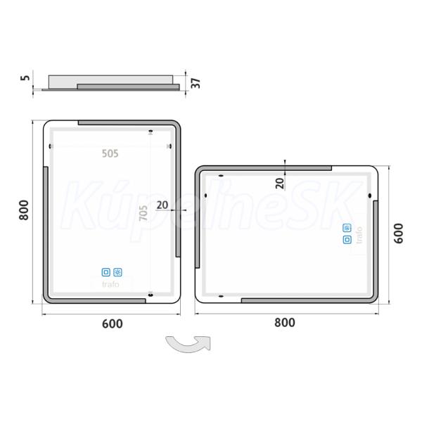 Nimco OBDELNÍKOVÁ - OBLÉ ROHY LED zrcadlo 600x800 se dvěma dotykovými senzory Skrytý, ZP 1
