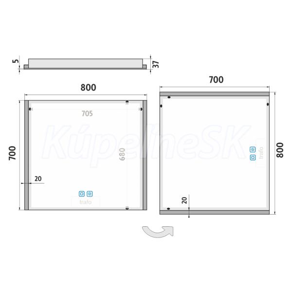 Nimco OBDELNÍKOVÁ - OSTRÉ ROHY LED zrcadlo 800x700 se dvěma dotykovými senzory Skrytý, ZP