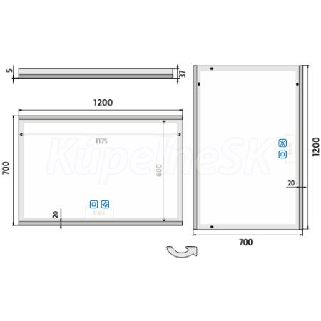Nimco OBDELNÍKOVÁ - OSTRÉ ROHY LED zrcadlo 1200x700 se dvěma dotykovými senzory Skrytý, ZP
