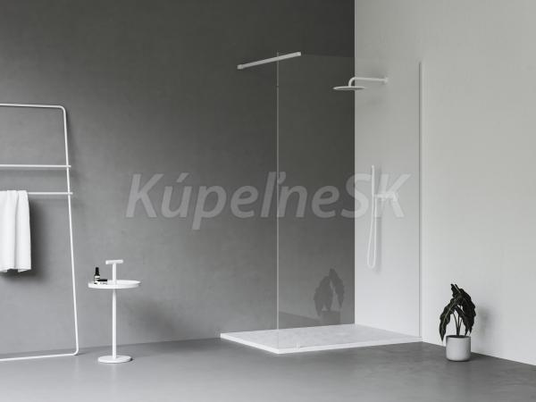 Sprchový kút Walk-In Wall s otvoreným vstupom z jednej strany. V bielom matnom vyhotovení a s výplňou z číreho skla s ochrannou vrstvou Ravak AntiCalc®. Výrobok je zložený z pevnej steny a kovových častí.