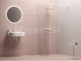 Sprchový kút Walk-In Wall s bielou povrchovou úpravou kovových častí. Odporúčame inštalovať do obloženého rohu kúpeľne priamo na podlahu so zabudovaným odtokovým žľabom či podlahovým vpustom. Sprchový kút je univerzálny, pri montáži si zvolíte pravú či ľavú orientáciu vstupu. Balenie obsahuje pevnú sklenenú stenu s upevňovacím profilom v bielom vyhotovení.