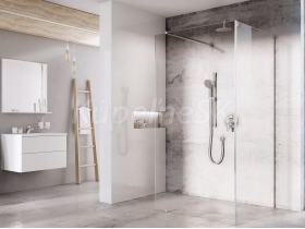 Rohový sprchový kút Walk-In Corner s otvoreným vstupom z jednej strany. Vo vyhotovení lesklý chróm a s výplňou z číreho skla s ochrannou vrstvou Ravak AntiCalc®. Výrobok je zložený z pevnej steny a kovových častí. rozmery: 110x80 cm výška: 200 cm výplň z bezpečnostného skla: 8 mm; Transparent s ochranou skla Ravak AntiCalc® sklá s upevňovacím profilom: v lesklom chrómovom vyhotovení Sprchový kút Walk-In Corner tvoria dve tvrdené bezpečnostné sklá o hrúbke 8 mm, ktoré sa spájajú rohovým spojovacím profilom. Stabilitu výrobku zabezpečuje kovová vzpera, ktorá spolu s bočným sklom určuje šírku otvoreného vstupu. Sprchový kút Walk-In Corner s lesklou chrómovou povrchovou úpravou kovových častí. Odporúčame inštalovať priamo na podlahu so zabudovaným odtokovým žľabom alebo podlahovým vpustom. Sprchový kút je univerzálny, pri montáži si zvolíte pravú či ľavú orientáciu vstupu. Balenie obsahuje dve pevné sklenené steny s ustavovacím profilom a rohovým spojovacím profilom v lesklom chrómovom vyhotovení. Súčasťou balenia je podpera a kovová vzpera v lesklom chrómovom vyhotovení.