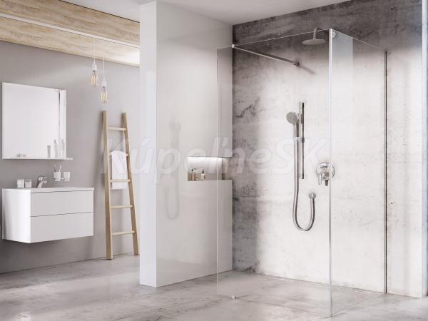 Sprchovací kút Walk-In Corner tvoria dve tvrdené bezpečnostné sklá s hrúbkou 8 mm, ktoré sa spájajú rohovým spojovacím profilom. Stabilitu výrobku zaisťuje kovová vzpera, ktorá spolu s bočným sklom určuje šírku otvoreného vstupu.