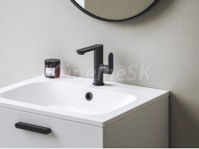 Stojanková umývadlová batéria Chrome II s bočnou pákou, bez výpustu. V čiernom prevedení. Funkcia EcoFlow, ktorá šetrí spotrebu vody.