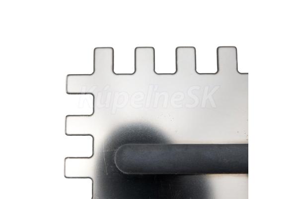 - výška a tvar zubu umožňuje nanesenie jednej vrstvy lepidla na pracovnú plochu a tenkej výstužnej vrstvy
