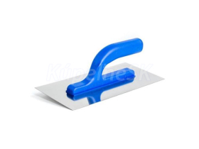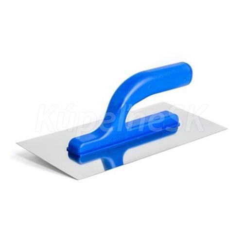 Hladká nerezová stierka 130 x 270 mm plastová, ergonomická rukoväť: PS - polystyrén z nehrdzavejúcej ocele, hrúbka plechu odolná voči kyselinám. 0,7 mm používa sa na nanášanie lepidiel pod obklady, dlažby, malty, omietky, štuky a iné stavebné materiály