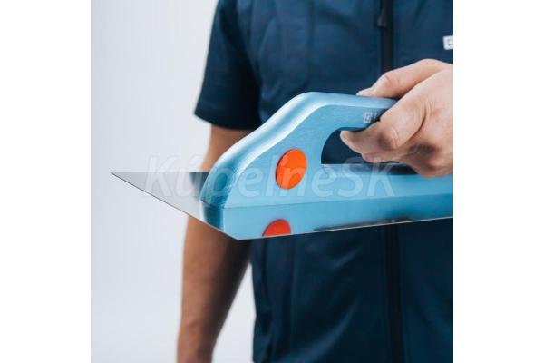 Hladká stierka z nehrdzavejúcej ocele ergonomická, buková, lakovaná rukoväť z nehrdzavejúcej ocele, hrúbka plechu odolná voči kyselinám. 0,7 mm používa sa na nanášanie lepidiel pod obklady, dlažby, malty, omietky, štuky a iné stavebné materiály