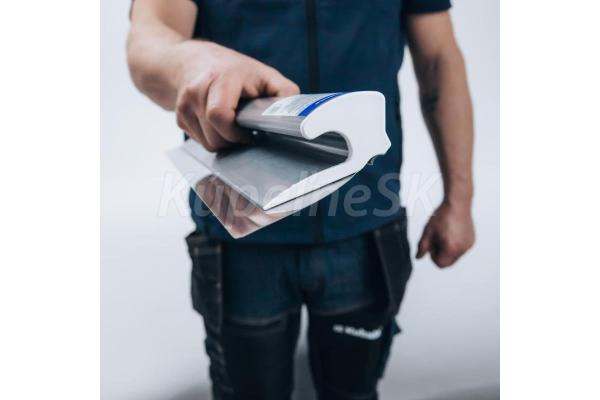 naťahovanie omietky z nehrdzavejúcej ocele, hrúbka plechu odolná voči kyselinám. 0,5 mm nevymeniteľná čepeľ pružná čepeľ so zaoblenými rohmi nezanecháva žiadne ryhy Ergonomicky tvarovaná rukoväť na prácu jednou alebo dvoma rukami
