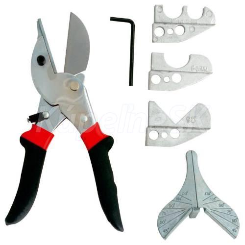 Nožnice na PVC pásy tvrdená čepeľ s vymeniteľnými čeľusťami určené pre PVC koľajnice s nastaviteľnými uhlami rezu ergonomická rukoväť