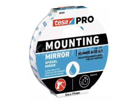 • tesa PRO Montážne zrkadlo je vynikajúcou voľbou pre profesionálnych remeselníkov, ktorým zákazníci zakazujú vŕtanie do stien. Samolepiaca páska ponúka spoľahlivé upevnenie aj vo vlhkom prostredí kúpeľne. Odolná páska priľne na hladké povrchy (napr. obkladačky) a dokáže upevniť ploché predmety (napr. zrkadlá) s hrúbkou až 4 mm. S touto obojstrannou páskou splníte každé želanie svojich zákazníkov.