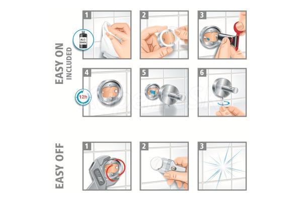 tesa® Moon Súprava toaletnej kefy s držiakom Povrch bez odtlačkov prstov Technológia tesa® Power.Kit umožňuje inštaláciu pomocou lepidla nepôsobí na tapety, omietku a iné nepriľnavé povrchy spoľahlivá montáž na stenu, vodotesnosť, zaručená odolnosť proti korózii hlavica kefky sa dá odskrutkovať farba: nerezová oceľ Rozmery: 390 mm x 115 mm x 147 mm prídržná sila: 6 Kg Materiál: kov, saténové sklo Obsah produktu: 1 x WC kefa, 1 x adaptér, 1 x aplikátor, 1 x manuál