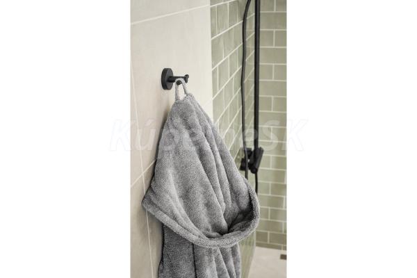 samolepiaci háčik na oblečenie tesa® Moon Black štýlový háčik na uteráky alebo oblečenie Technológia tesa® Power.Kit - univerzálne lepiace montážne riešenie priľne na glazované dlaždice, kov, prírodný kameň, mramor, betón, drevo, sklo a mnohé druhy plastov nie je vhodný na omietky, tapety, plasty ako PP, PE, PTFE a iné nepriľnavé povrchy farba: nerezová oceľ farba: čierna rozmery: 50 mm x 65 mm x 53 mm prídržná sila: 6 Kg materiál: kov s práškovou povrchovou úpravou Obsah produktu: 1 x háčik na župan, 1 x adaptér, 1 x aplikátor, 1 x návod