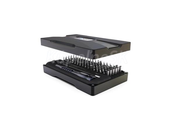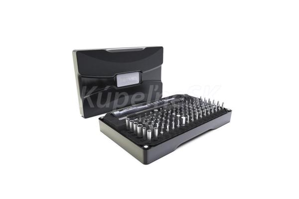 Sada ručního nářadí pro precizní práci, 106ks. Mininářadí vhodné pro opravy veškeré drobné elektroniky počítačů, telefonů, hodinářství a další jemnou mechaniku. Základ sady tvoří šroubovák z hliníkové slitiny s protiskluzným povrchem, flexi prodlužovací n