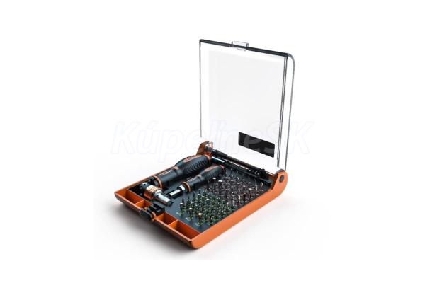 Sada ručného náradia na presnú prácu, 73ks. Náradie vhodné na opravu všetkej drobnej elektroniky, počítačov, telefónov, hodiniek a iných zariadení jemnej mechaniky. Základ sady tvorí 1 skrutkovač menší s protišmykovým povrchom a račňou, 1 skrutkovač väčší s protišmykovým