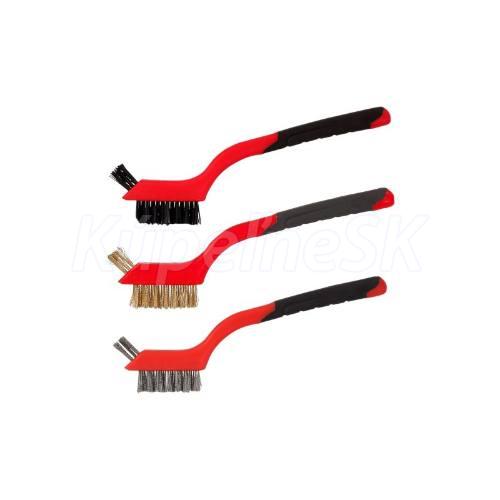 sada troch kefiek na ruky telo kefky z polypropylénu a TPR gumy, štetiny z nehrdzavejúcej ocele, mosadze a nylonových vlákien počet radov: 3 x 7 dĺžka: 180 mm
