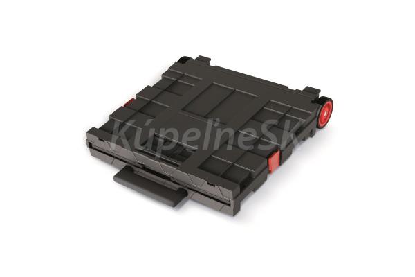 Skládací přepravku lze využívat také jako mobilní kufřík. Jednoduchá manipulace pomocí výsuvní ergonomické rukojeti z hliníku. Pohyb zajišťují dvě odolná kolečka s elastomerovým potahem.