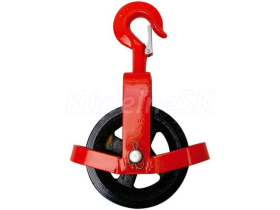 Kladka na murovanie S 500/0,5t C hák, kryt kladkostroj je jednoúčelové zariadenie určené na ručné zdvíhanie a spúšťanie voľných bremien pomocou polyamidového alebo textilného lana 500 kg nosnosť je limit pracovného zaťaženia, na ktoré je remenica navrhnutá maximy