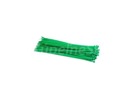 zelené kravaty určené na rýchle viazanie káblov, na pripevnenie rastlín k podperám, sietí k plotom atď. veľmi jednoduchá manipulácia vnútorná strana pásky so zubami zaručuje dobré upevnenie materiál nylon je odolný voči teplotám a UV žiareniu.