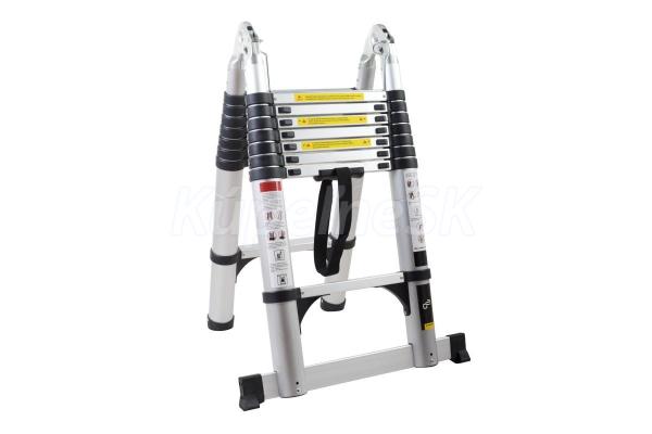 - vďaka špeciálnemu kĺbu možno tento ľahký skladací hliníkový teleskopický rebrík premeniť na praktický rebrík