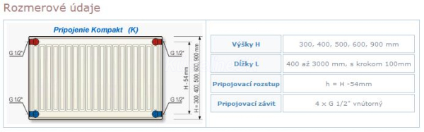 KORAD radiátor panelový bočné pripojenie 22K 300X0500(vxd)