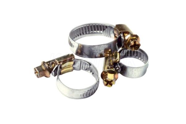 opatřena šroubem se šnekovitým závitem lisovaný pásek šíře 9 a 12 mm dle průměru spony se zaobleným okrajem pro větší bezpečnost při montáži, zvedlé okraje spony zajistí lepší ochranu hadice proti prodření vyrobena z kvalitní oceli pozinkována přesně ulož