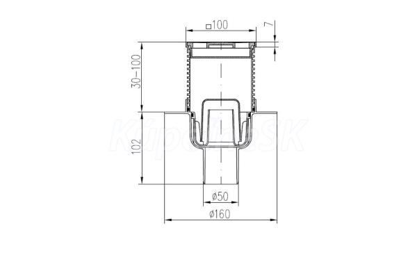 Límec žľabu možno použiť na pripojenie hydroizolácie alebo bitúmenovej fólie. z PP, mriežka z nehrdzavejúcej ocele podľa DIN 1.4301, hrúbka 1,5 mm prietok 24 - 28 l/min Trieda zaťaženia K 3 - 300 kg odolnosť do 90 °C určené na odvádzanie vody vo vnútri budov